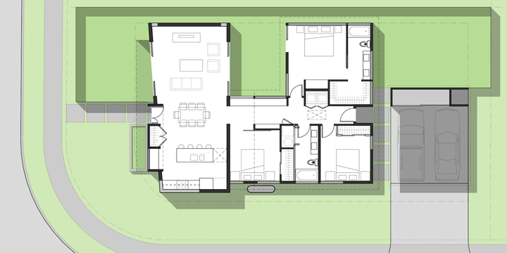 Modern, Sustainable House Plans1505 Plan: This contemporary house design has a strong connection to outdoor areas with architecture that provides multiple courtyard areas. It is Green home design at its best.Specific design amenities: